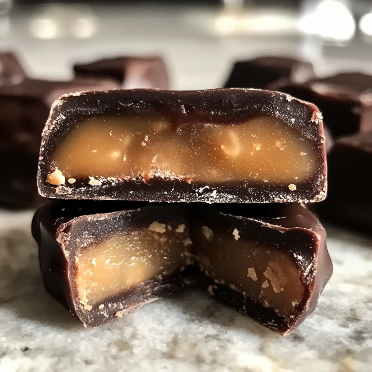 - Dark Chocolate Mousse: Elevate the treat with a luxurious dark chocolate mousse that mirrors the deep chocolate coating of the date caramels.