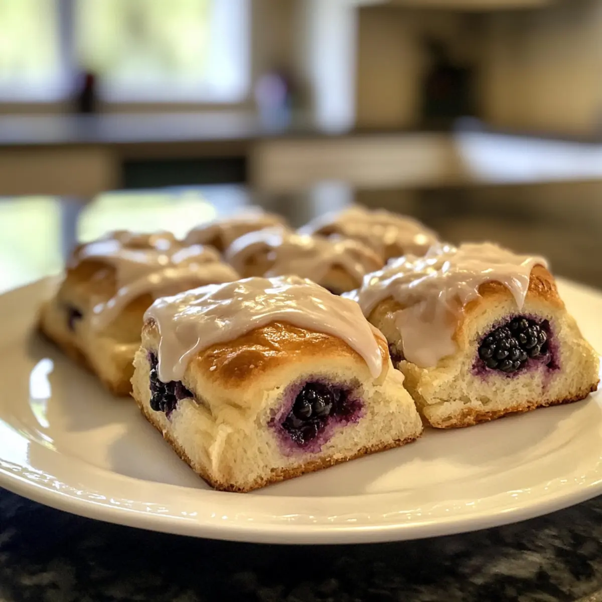 - Drizzle with optional icing or leftover blackberry filling before serving.