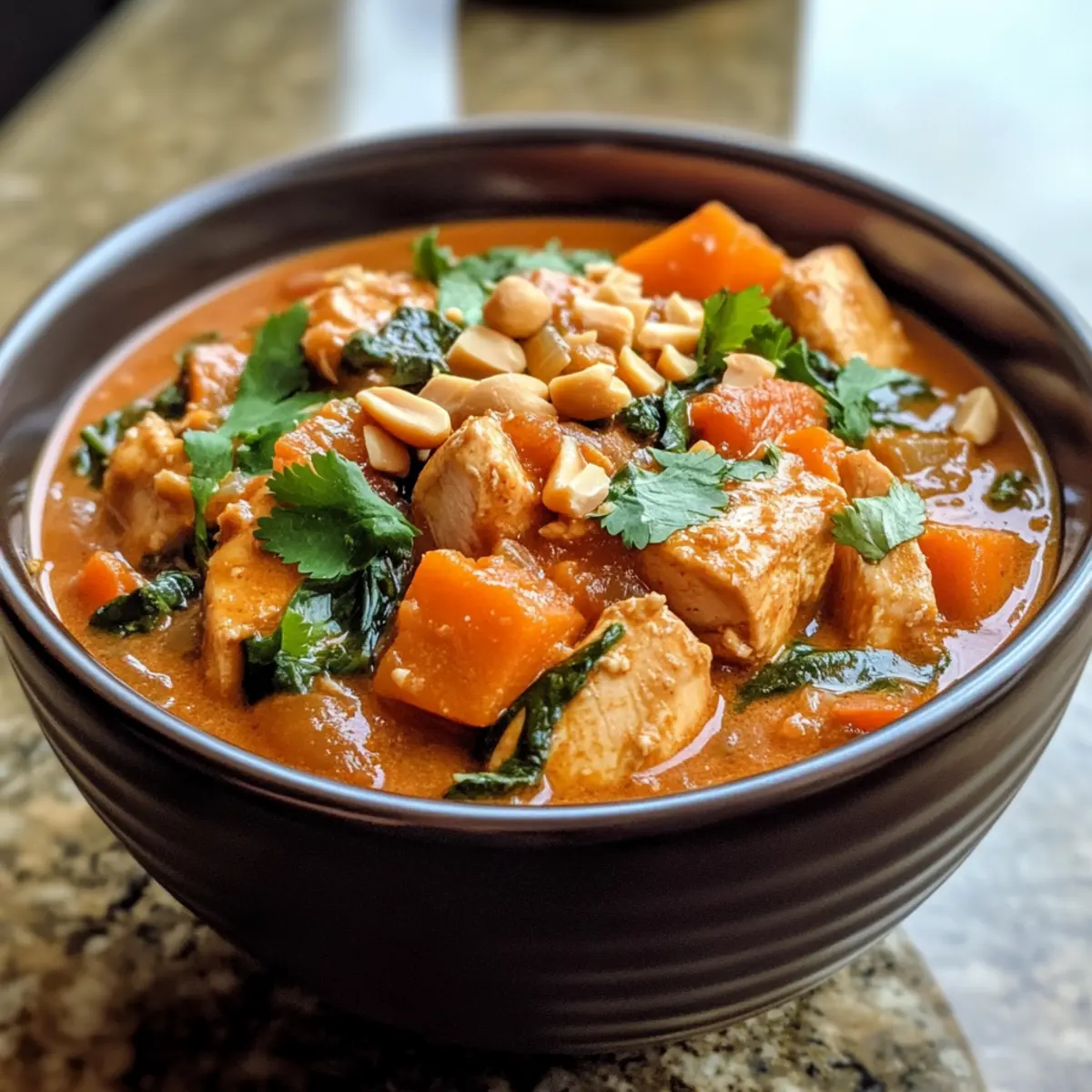 Hearty Comfort: The African Chicken Peanut Stew wraps you in warmth with its creamy peanut base and tender chicken, making it perfect for those chilly nights.