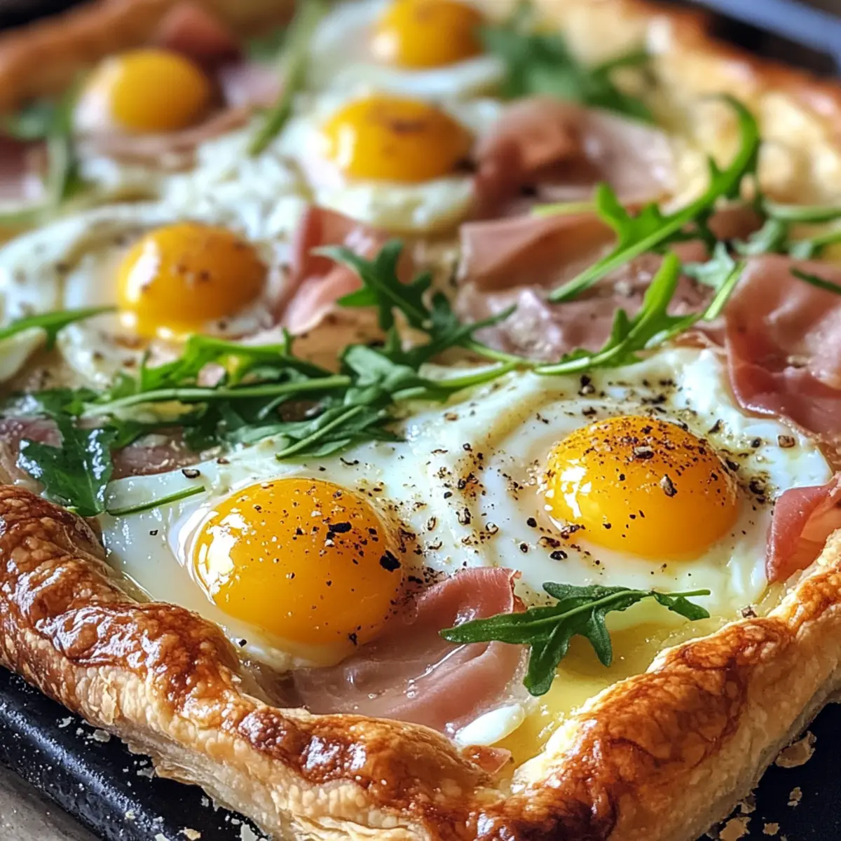 There’s something magical about breakfast that feels like an adventure waiting to unfold. When I crafted this Baked Prosciutto and Egg Breakfast Tart, I wanted to bring a taste of the Mediterranean right into my kitchen. This delightful dish combines buttery puff pastry with creamy Boursin cheese, and the moment you crack those eggs on top, it feels like a celebration in the making. Not only is this tart a quick-prep winner, but it’s also a versatile option for any brunch occasion. You can easily swap toppings and adapt it for individual servings, so it suits both casual weekend mornings and festive gatherings. Are you ready to elevate your breakfast game? Let’s dive into this savory treat that promises to impress!