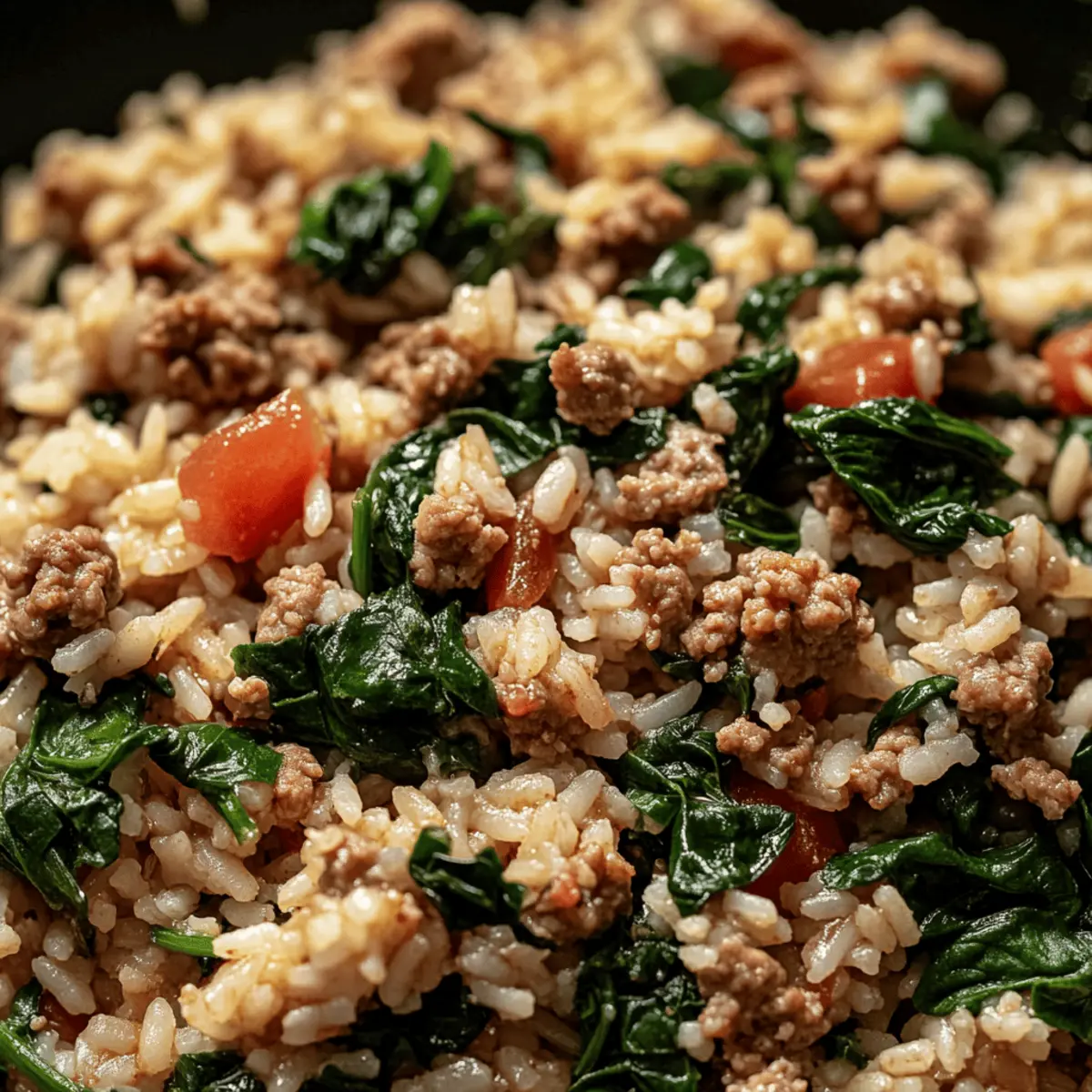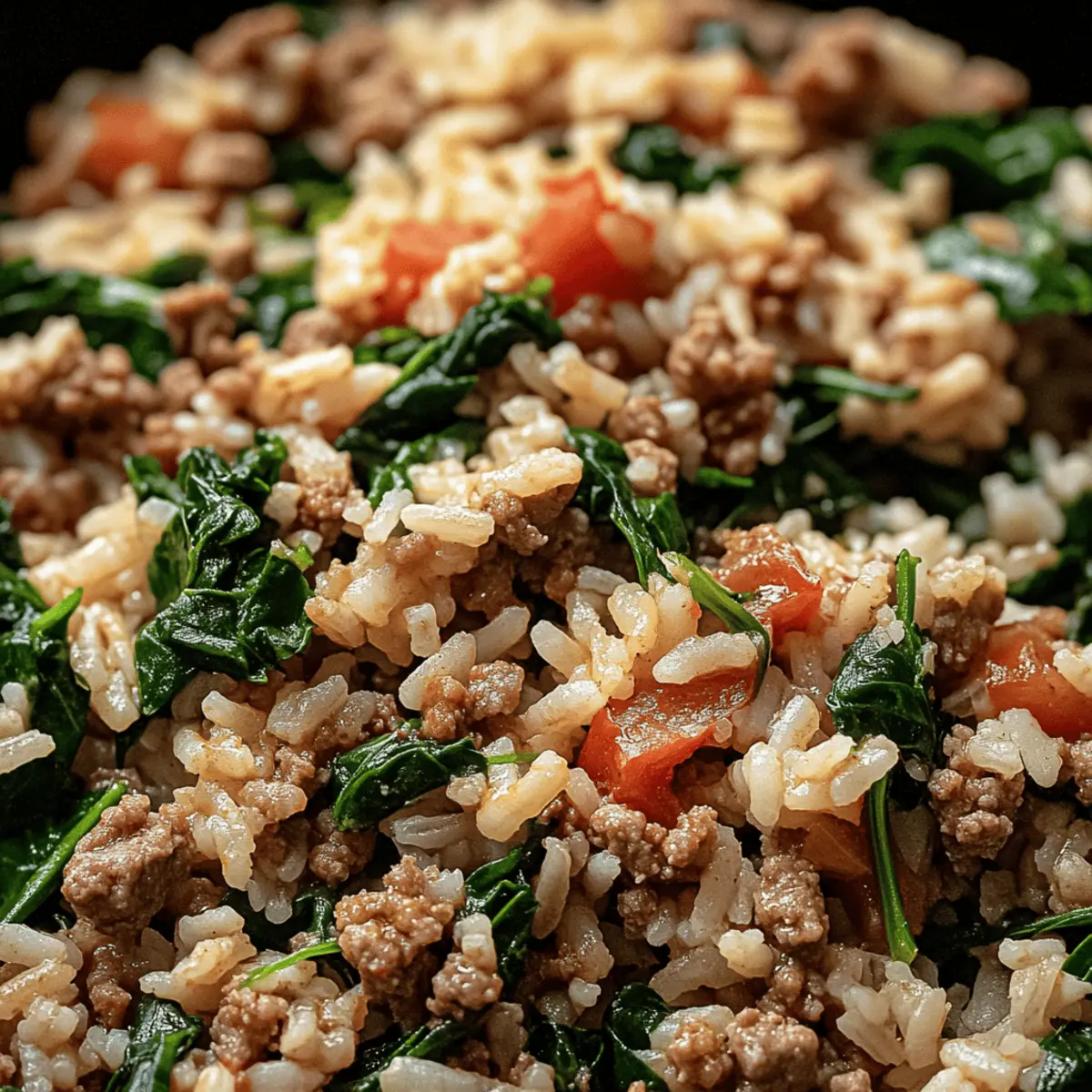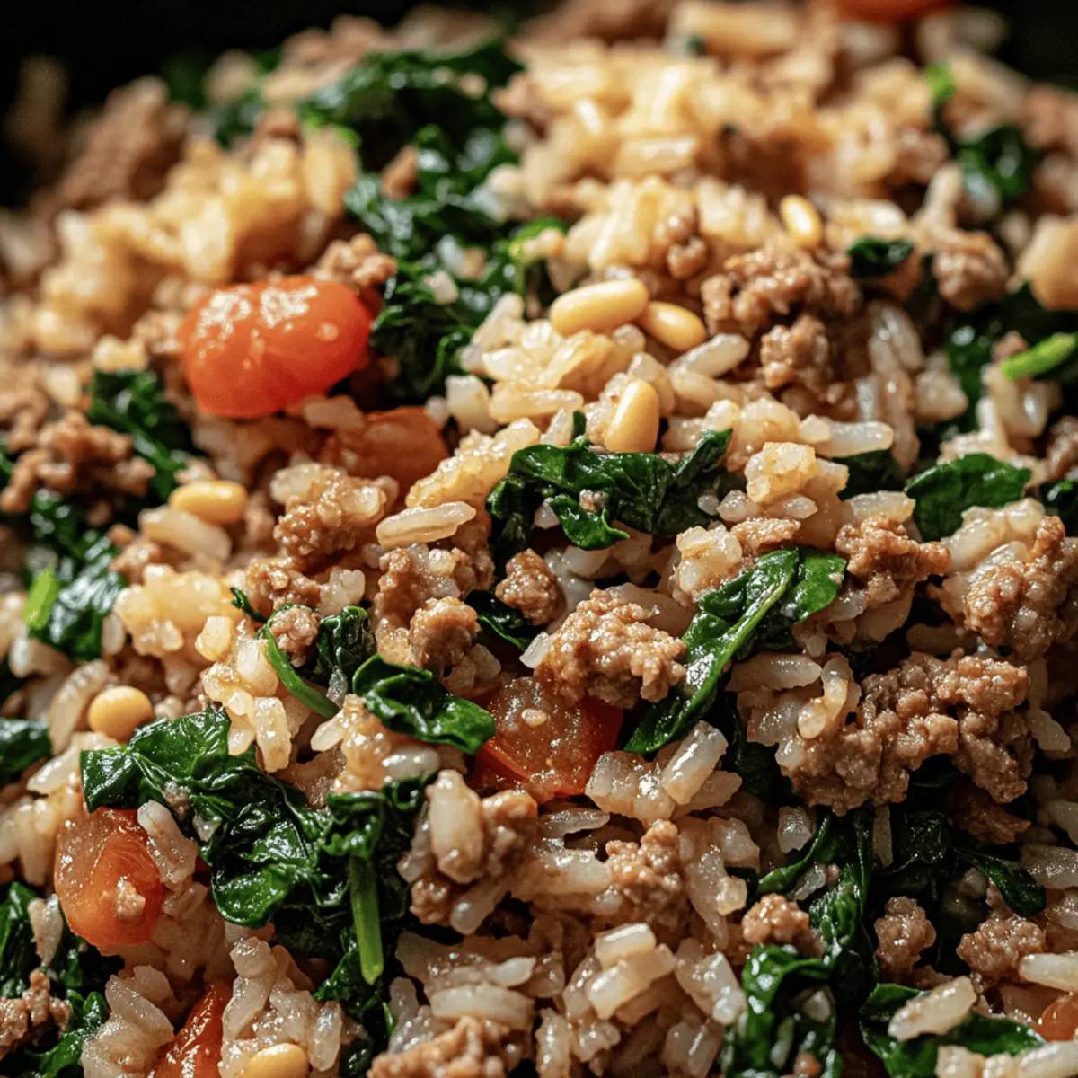 Add a handful of fresh spinach to the skillet and cook for 2 minutes or until just wilted. As the greens soften and blend with the mixture, season everything with salt and pepper to taste. This vibrant spinach not only contributes nutrition but also brightens your Best Ground Lamb Rice.