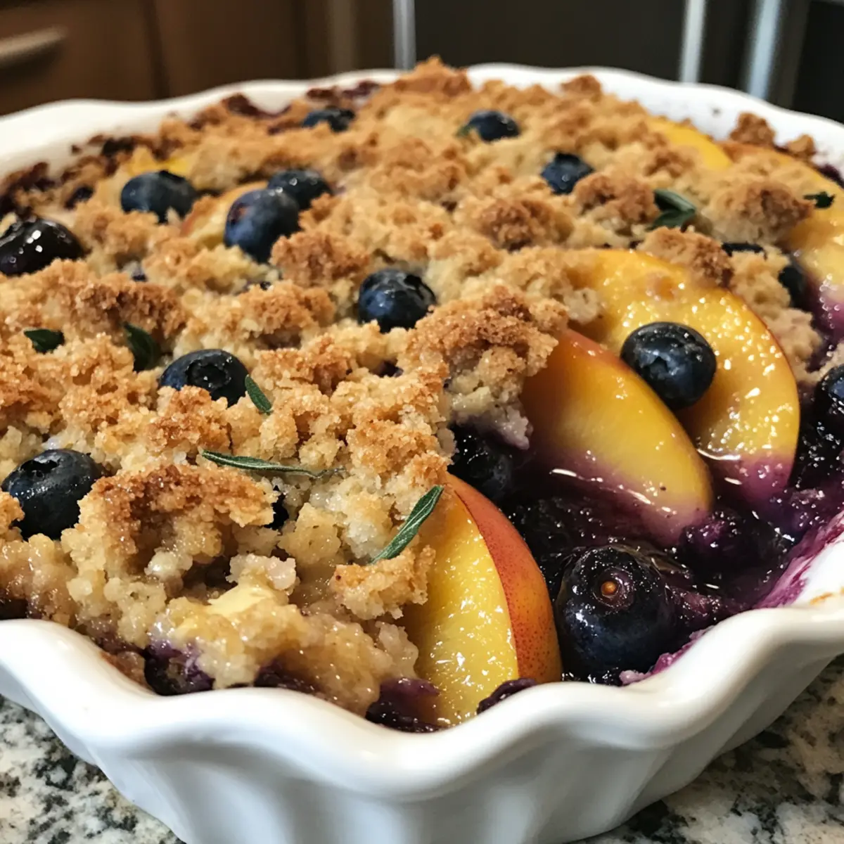 • Flavor Depth: Allow your fruit filling to sit for about 10 minutes before baking. This enhances the natural sweetness and harmony of flavors in your Blueberry Peach Crumble.