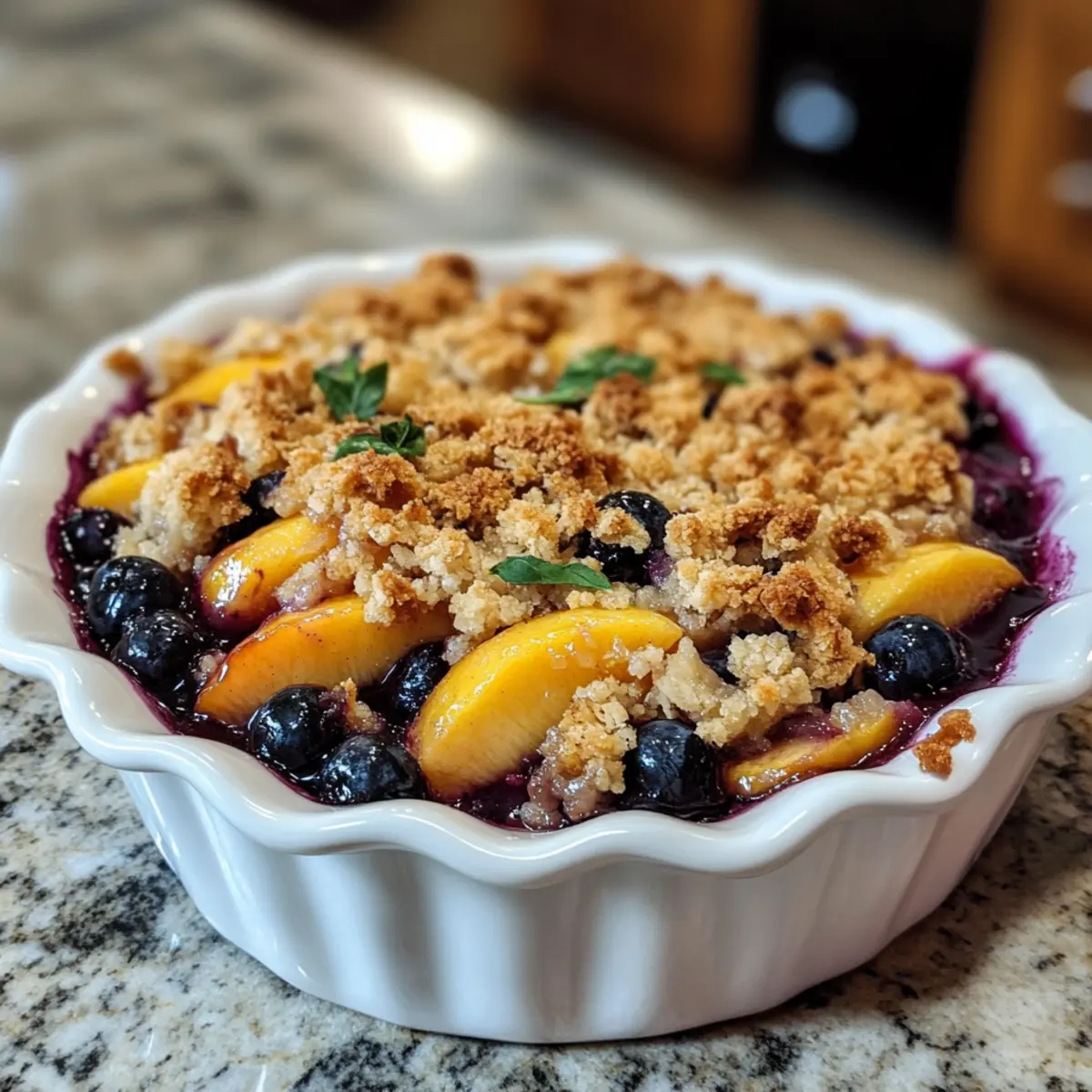 On a warm summer afternoon, there’s nothing quite like the aroma of fresh peaches and blueberries wafting through the kitchen. That’s right—today, I’m sharing my recipe for Blueberry Peach Crumble, a seasonal dessert that transforms simple ingredients into something truly remarkable. This delightful treat not only features juicy, sun-kissed fruits, but it also has a perfectly buttery, crisp topping that will have your friends and family begging for seconds. The best part? It’s quick to prepare, making it an effortless crowd-pleaser for any gathering. Whether you serve it in an elegant plating style or family-style straight from the baking dish, this crumble is sure to impress. Are you ready to elevate your dessert game and create a dish that feels like fine dining? Let’s dive in!