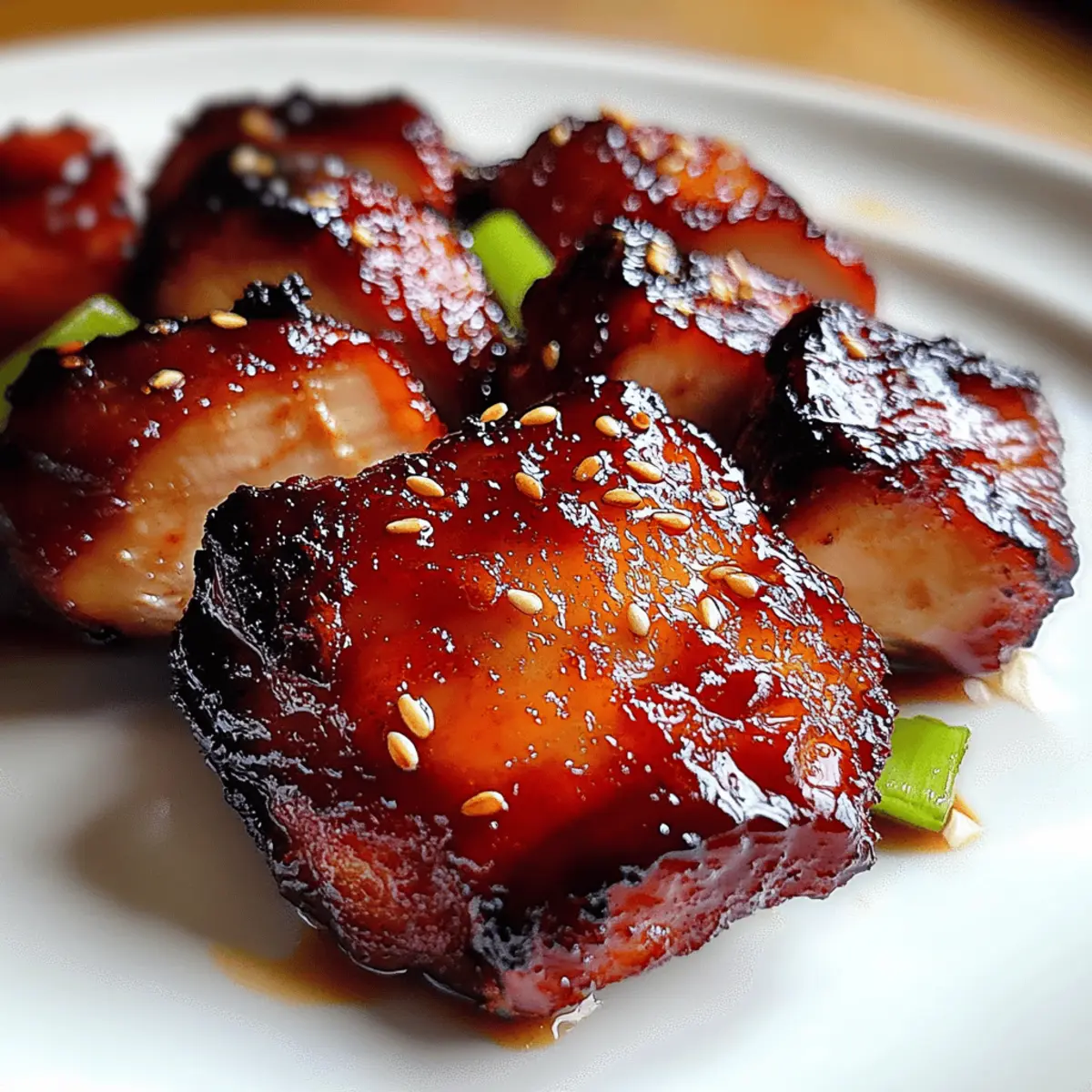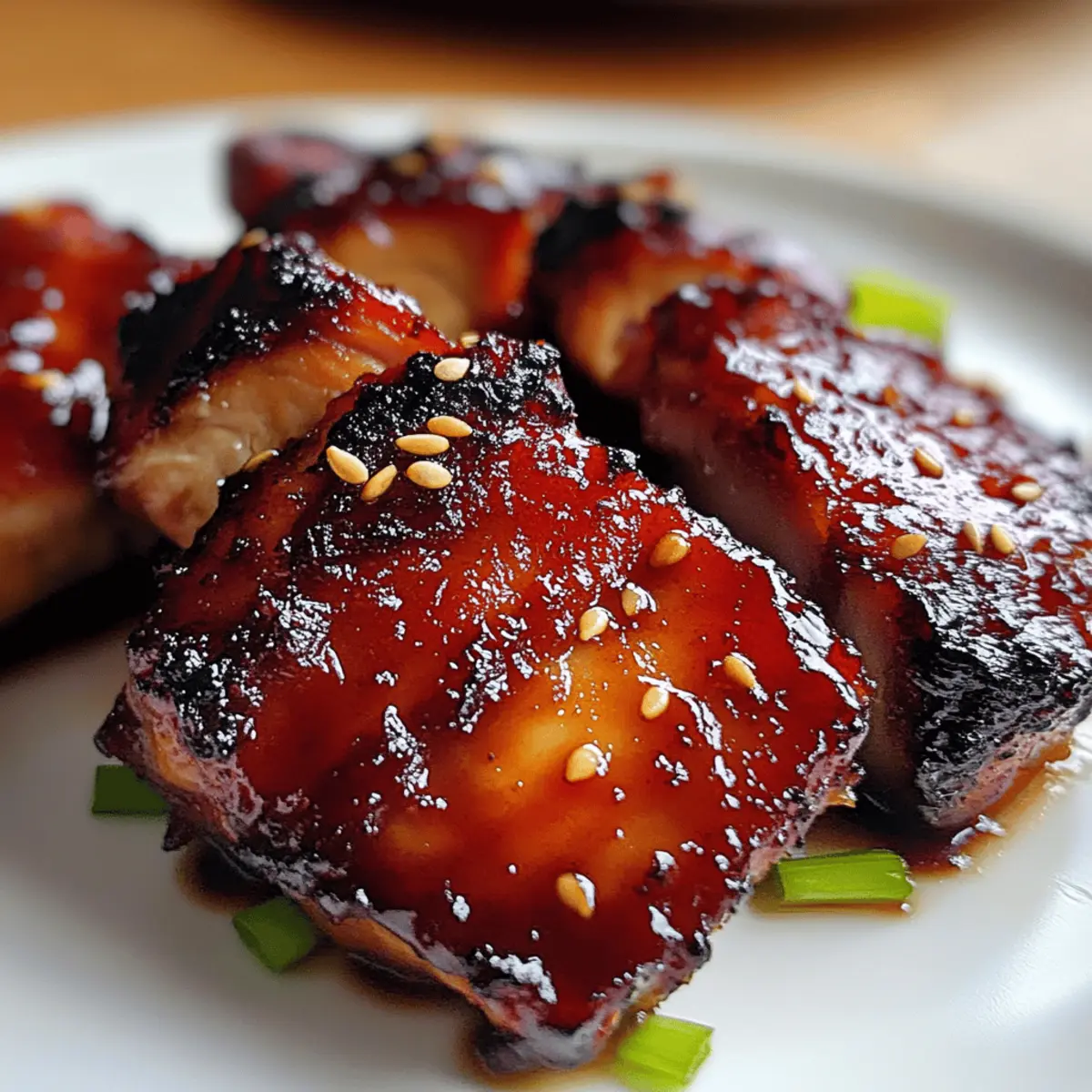 After resting, slice the Char Siu Chicken into bite-sized pieces, showcasing that glossy, sticky finish. To serve, arrange the slices on a platter, and garnish with toasted sesame seeds and sliced green onions for a pop of color and crunch. Pair it with steamed rice or noodles for a complete meal that’s sure to impress your family and friends!