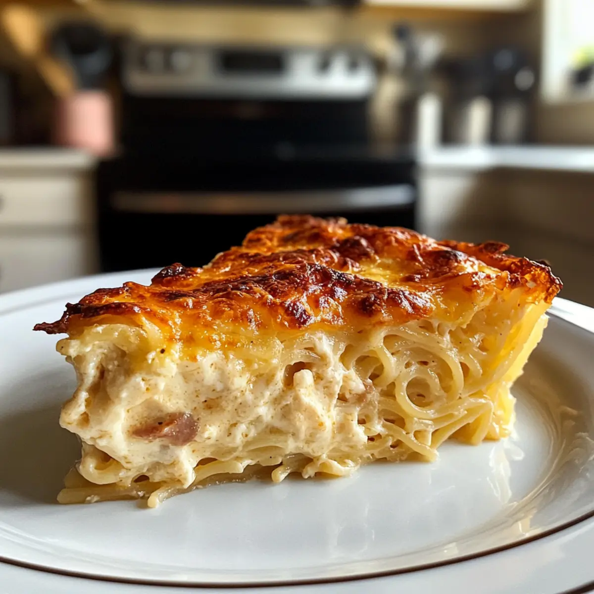 This Chicken Carbonara Spaghetti Pie is sure to become a cherished favorite in your household!