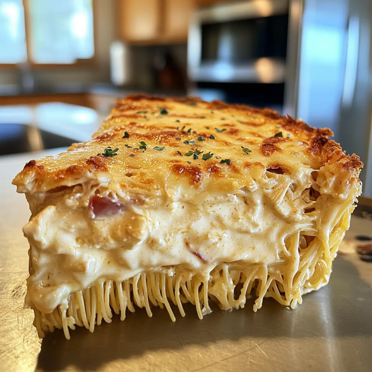 Comforting Delight: This recipe merges the beloved flavors of creamy chicken carbonara with a crispy spaghetti crust, creating a dish that’s both comforting and innovative.