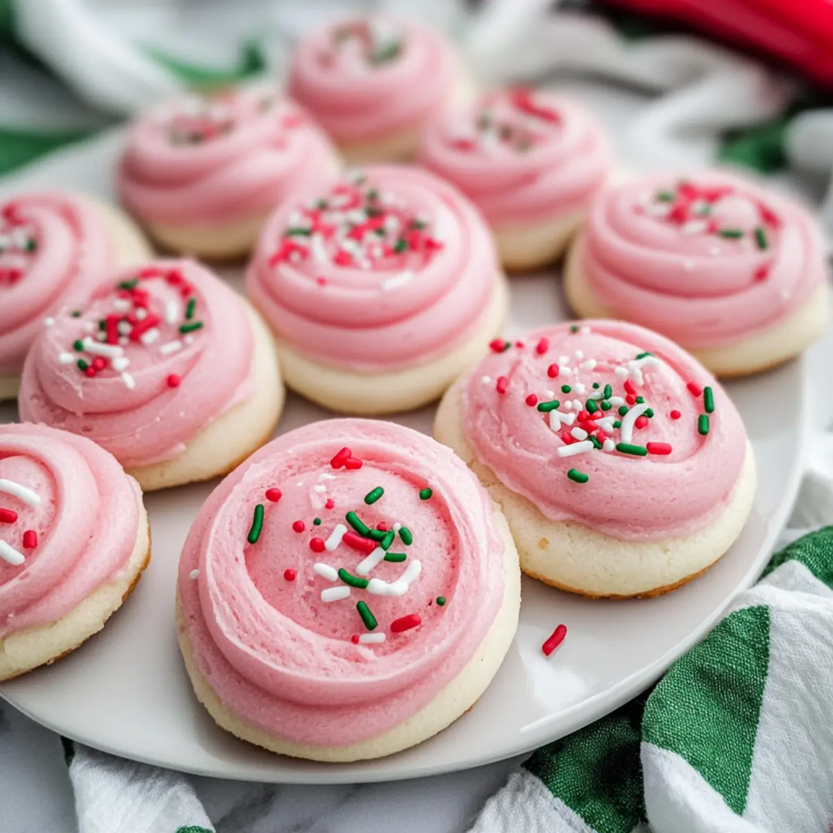 Once the cookies have cooled completely, it’s time to decorate! Use a piping bag or a simple knife to spread or pipe the cream cheese frosting onto each cookie. Don’t forget to add Christmas sprinkles immediately after frosting for that festive touch. Enjoy these delightful Christmas Pink Velvet Cookies as a treat or gift this holiday season!