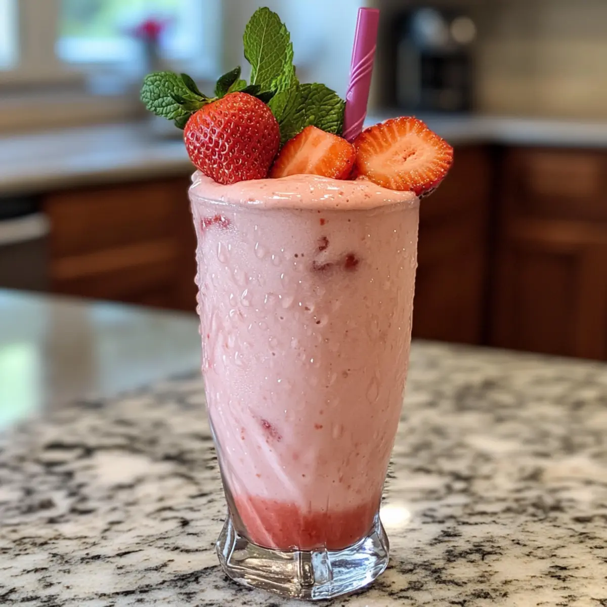 - Garnish with fresh strawberry slices and a sprig of mint before serving.