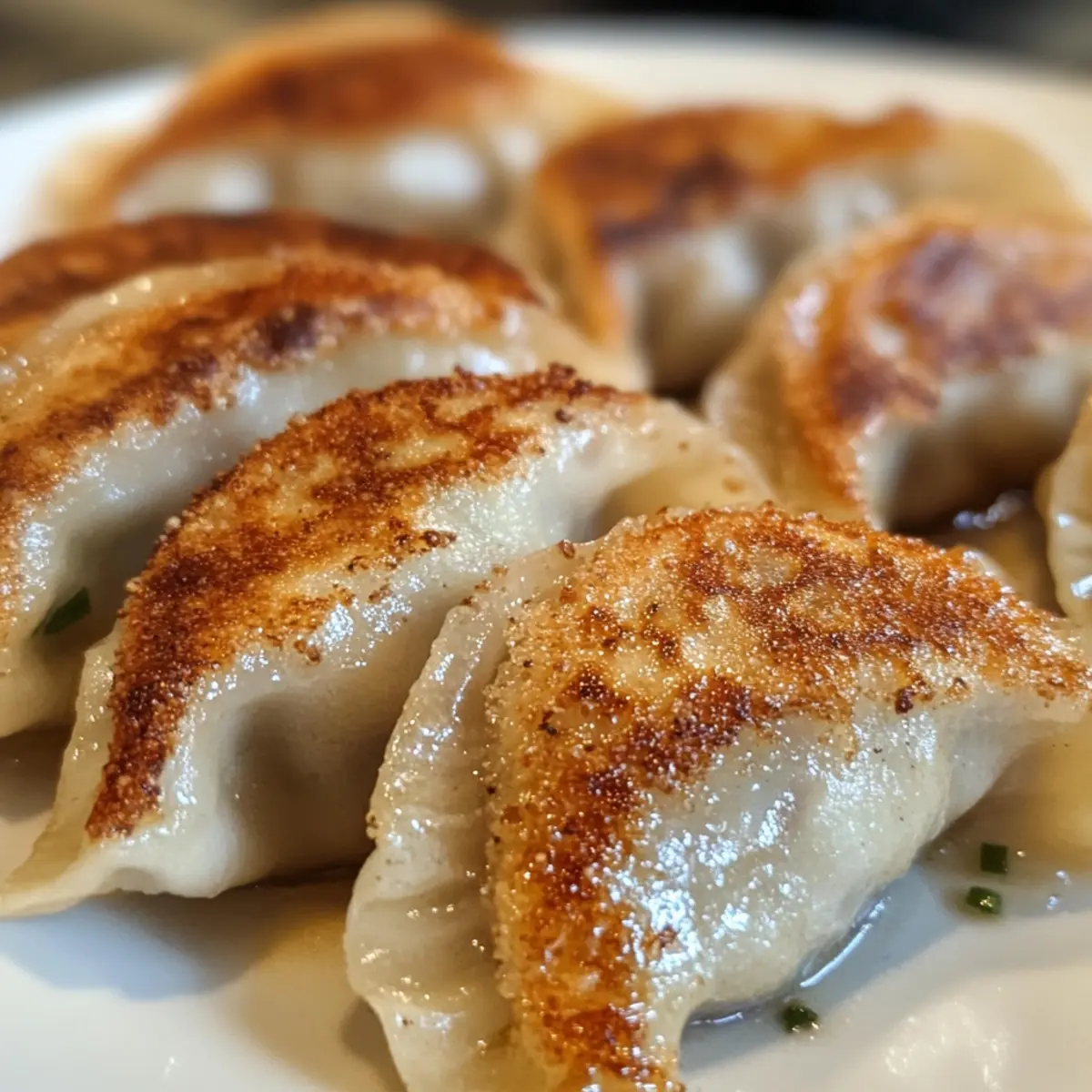 Carefully place the dumplings in the skillet, arranging them flat side down in a single layer, but don’t overcrowd them. Allow them to fry for about 2-3 minutes, or until they turn golden brown and the bottoms are crispy. Avoid moving them too much until they form a nice crust that holds together.