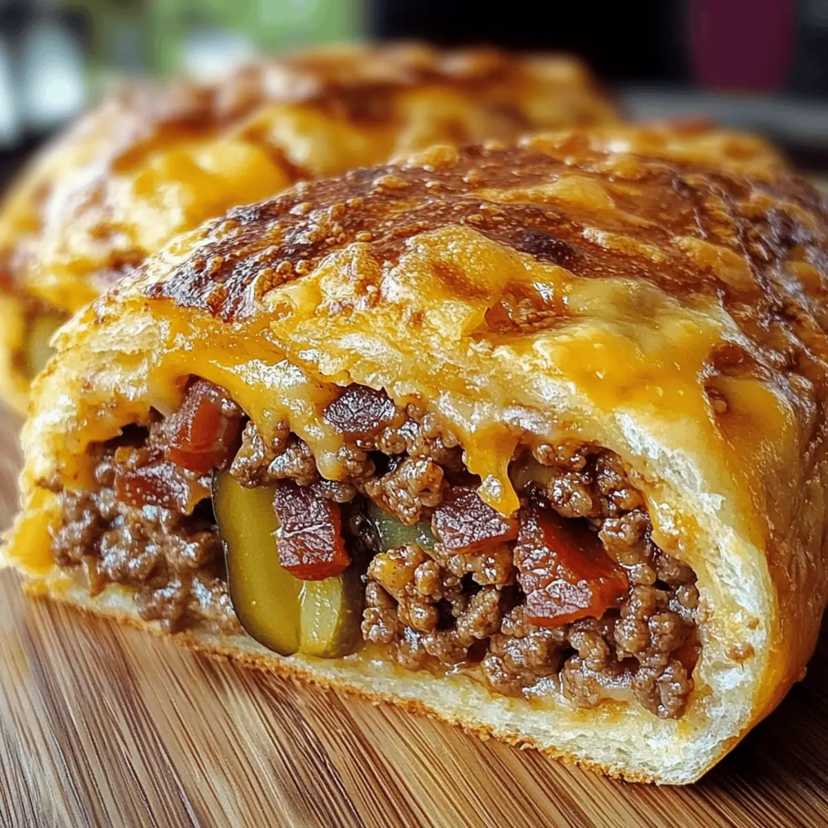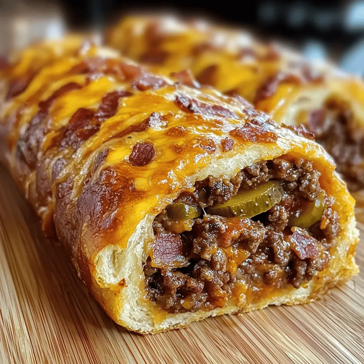 Layer the cooked beef mixture, crispy bacon, pickles, and shredded cheese evenly on top of the condiments. Distributing the ingredients evenly prevents overfilling and allows all the flavors to meld beautifully while baking.