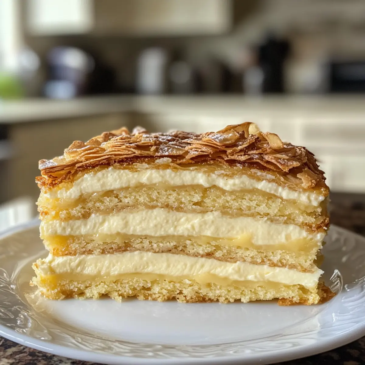 Coconut Cream: Instead of regular milk, use coconut milk for a tropical twist that enhances the cake’s richness. This will give your Heavenly Karpatka Cake an exotic flair reminiscent of sunny beaches.
