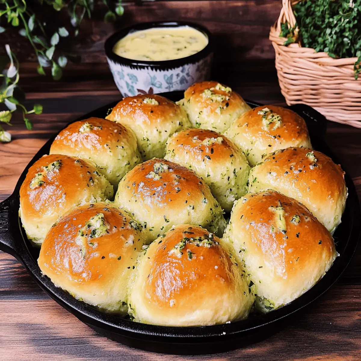 Herbed Potato Rolls: Fluffy Comfort with Garlic Scape Butter
