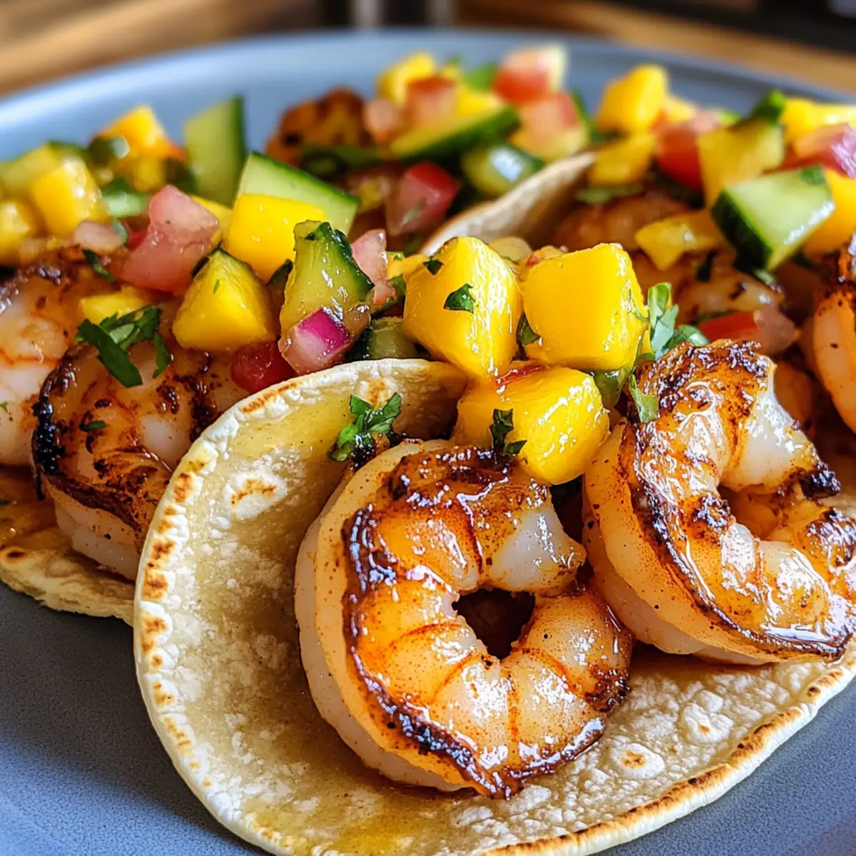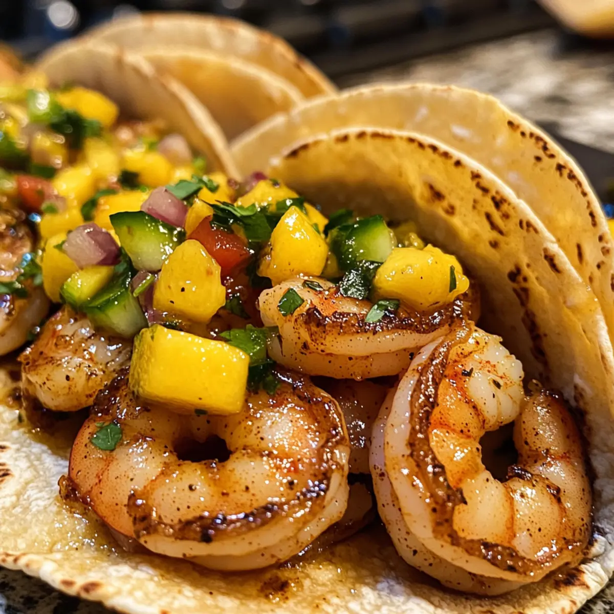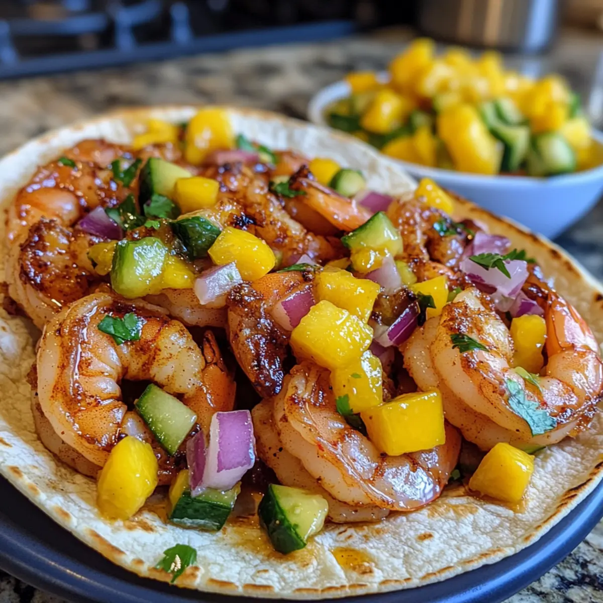 - Place shrimp onto each tortilla, top with mango salsa, and add extra lime juice or cilantro if desired.