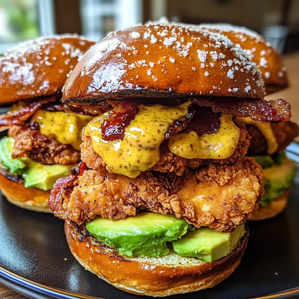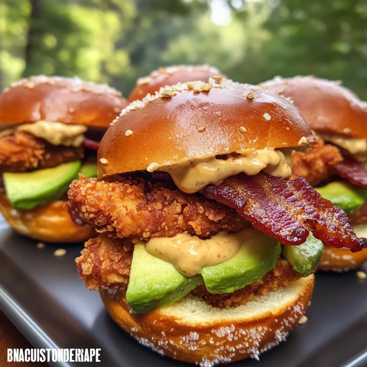 Delectable flavors: Every bite of these sliders marries the sweetness of honey mustard with savory fried chicken and crispy bacon, creating a mouthwatering experience.