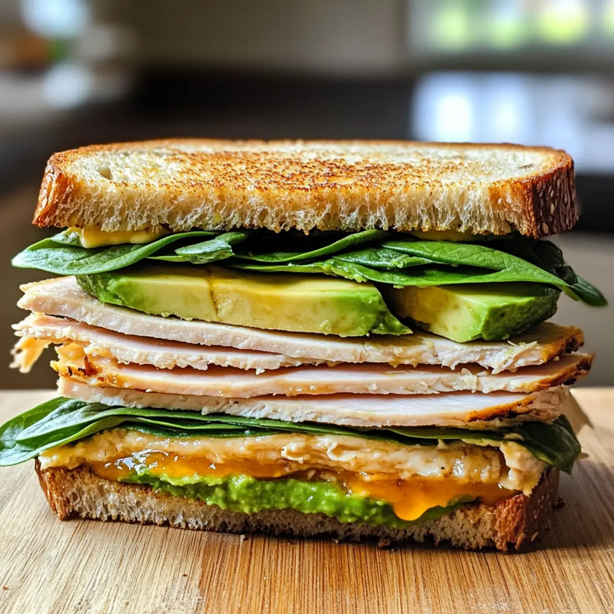 Begin by gathering all ingredients for your Honey Mustard Turkey Avocado Sandwich. Ensure the avocado is ripe for easy slicing; you should see a slight give when gently pressed. Wash the fresh spinach thoroughly to remove any grit, and set everything on your workspace for easy access. This preparation will make assembling your sandwich a breeze.