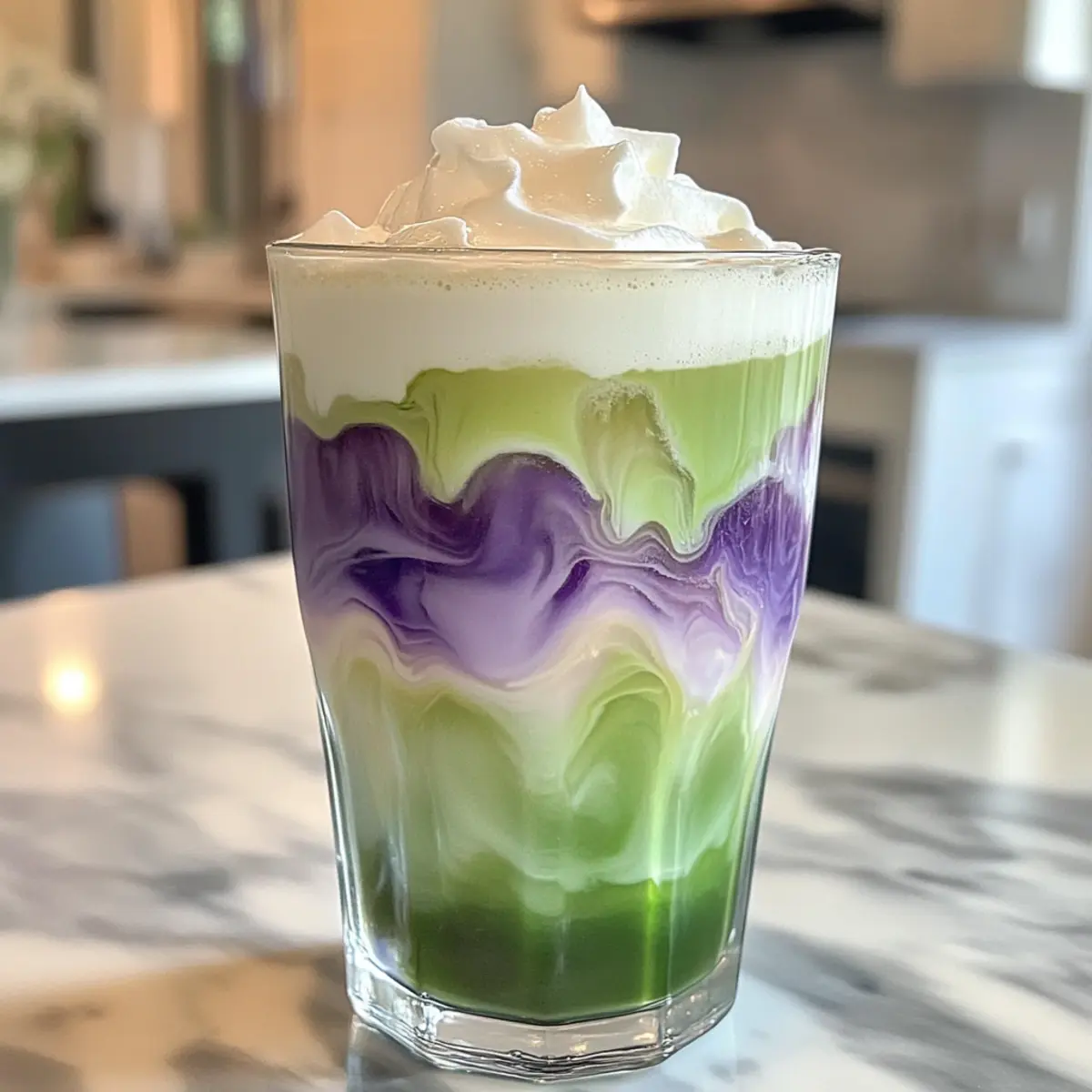 Drizzle the cooled lavender syrup over the layered drink, allowing the sweet, floral flavor to gently blend with the matcha and milk. For optimal presentation, adjust the amount of syrup based on your taste preference, starting with a small drizzle—you can always add more! Watch as the syrup creates a delicate swirl throughout the drink.