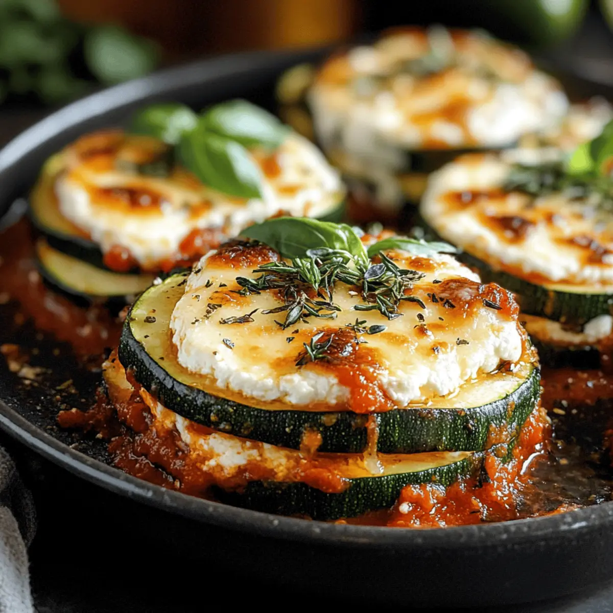 The aroma of Italian comfort food wafted through my kitchen as I prepared a dish that feels like a warm hug on a plate: Layered Zucchini Ricotta Melts with Marinara. This enchanting low-carb delight is a glorious celebration of fresh zucchini, velvety ricotta, and rich marinara, all topped off with luscious mozzarella that melts beautifully in the oven. Perfect for those weeknight dinners when time is scarce, these flavorful melts not only satisfy the cravings of cheese lovers but also offer a health-conscious alternative that keeps you feeling light. Each bite reveals a beautiful medley of textures and tastes, proving that wholesome cooking doesn’t have to be complicated. Are you ready to transform a few simple ingredients into a delectable dinner that will impress even the pickiest eaters? Let’s dive in!