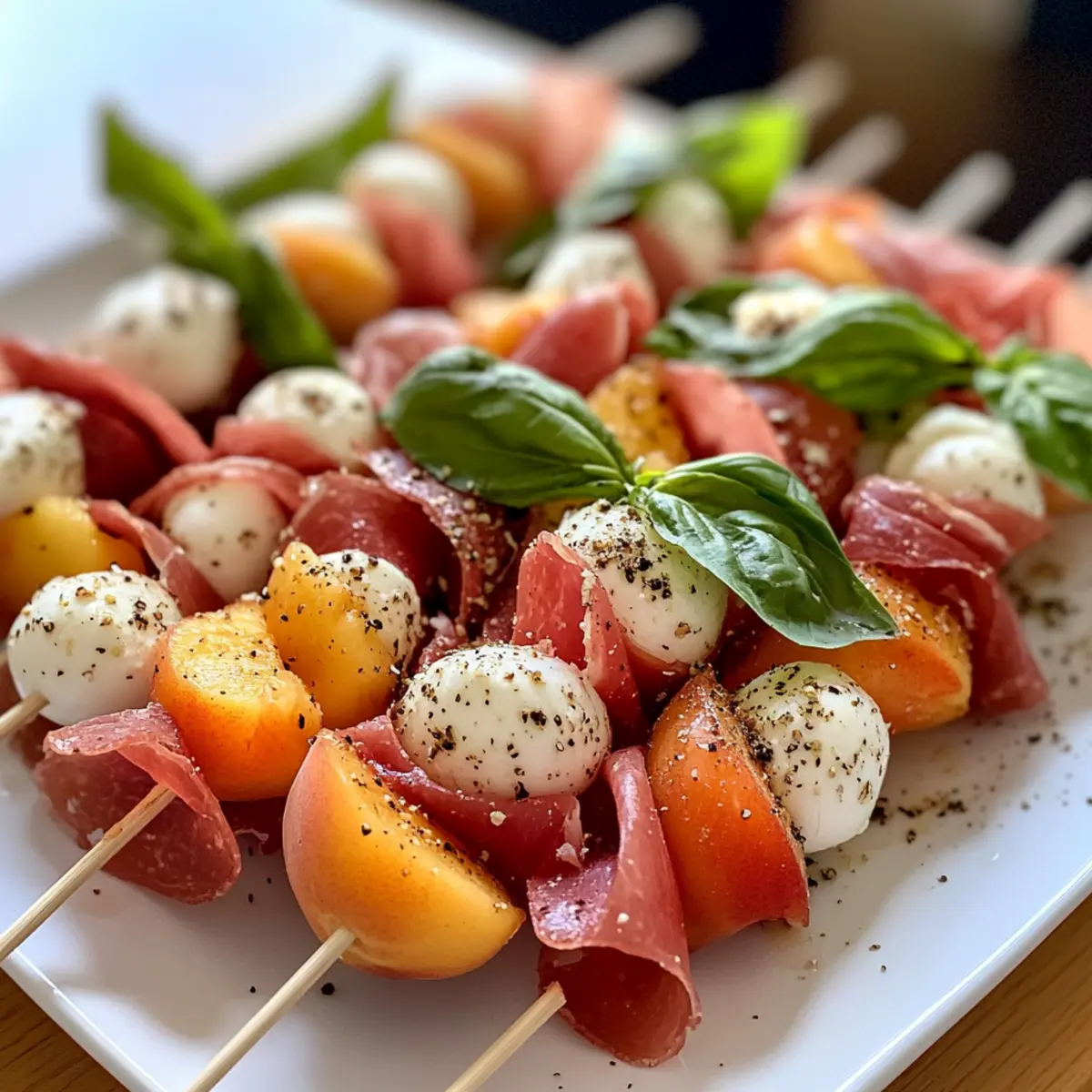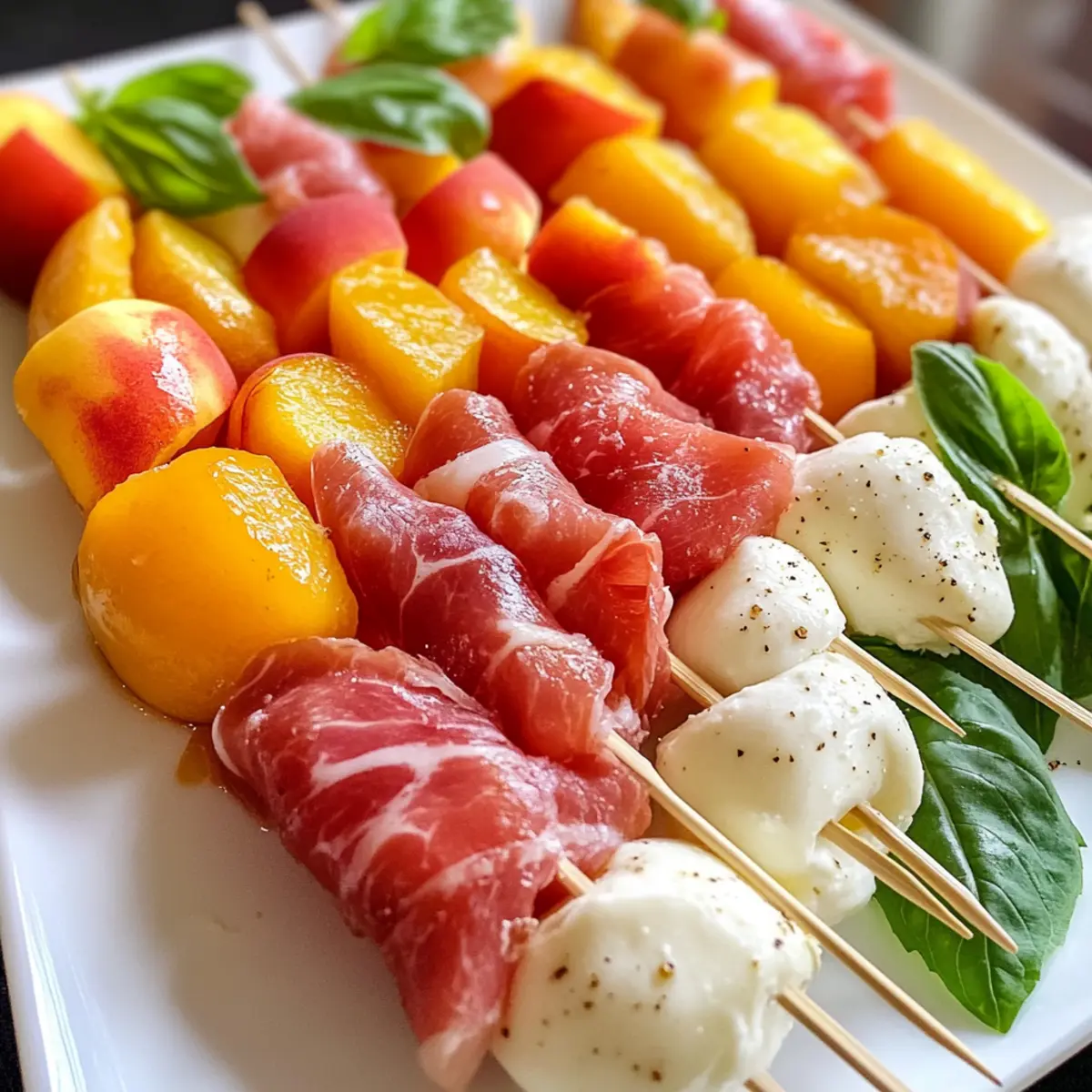 Mozzarella, Prosciutto, and Pickled Peach Skewers for Summer Bliss
