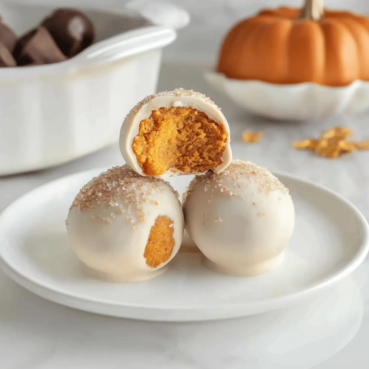 - Chill the coated pumpkin balls in the refrigerator for about 30 minutes until set.