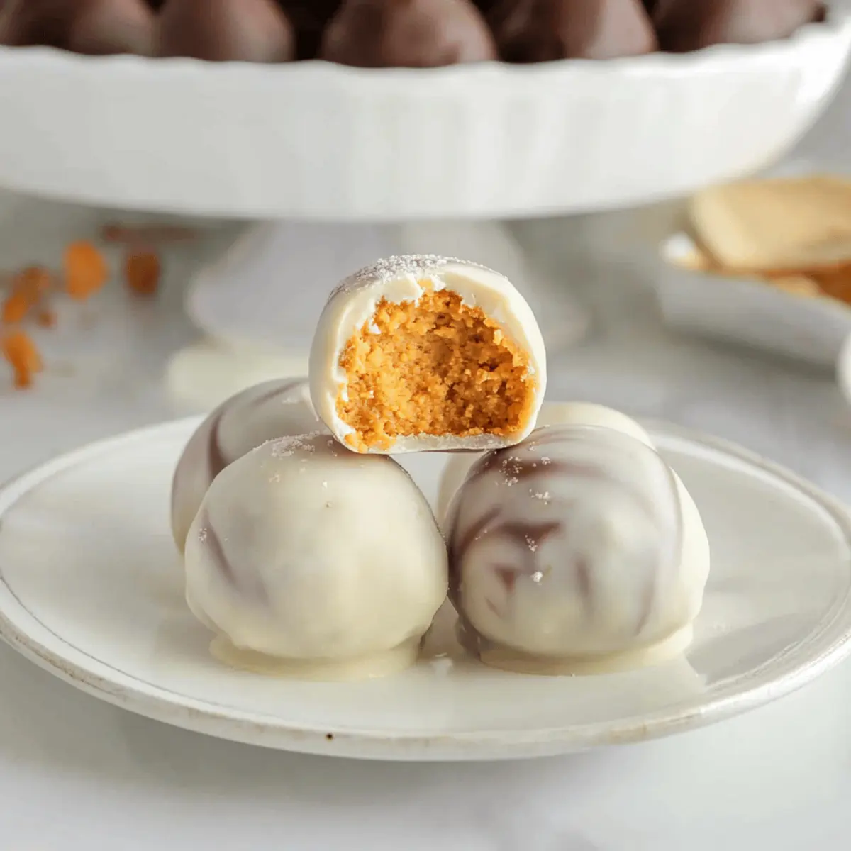 These No-Bake Pumpkin Pie Balls are perfect for meal prep, allowing you to enjoy a festive treat with minimal last-minute effort. You can shape the mixture into balls and refrigerate them for up to 24 hours before dipping them in the candy coating. This not only saves you time but also helps the flavors meld beautifully. To maintain the quality, ensure the pumpkin balls are placed in an airtight container while chilling. When it’s time to finish, simply melt your candy coating and dip the pre-shaped balls—this will take just a few minutes! These time-saving strategies make these No-Bake Pumpkin Pie Balls an ideal option for busy cooks during the holiday season.