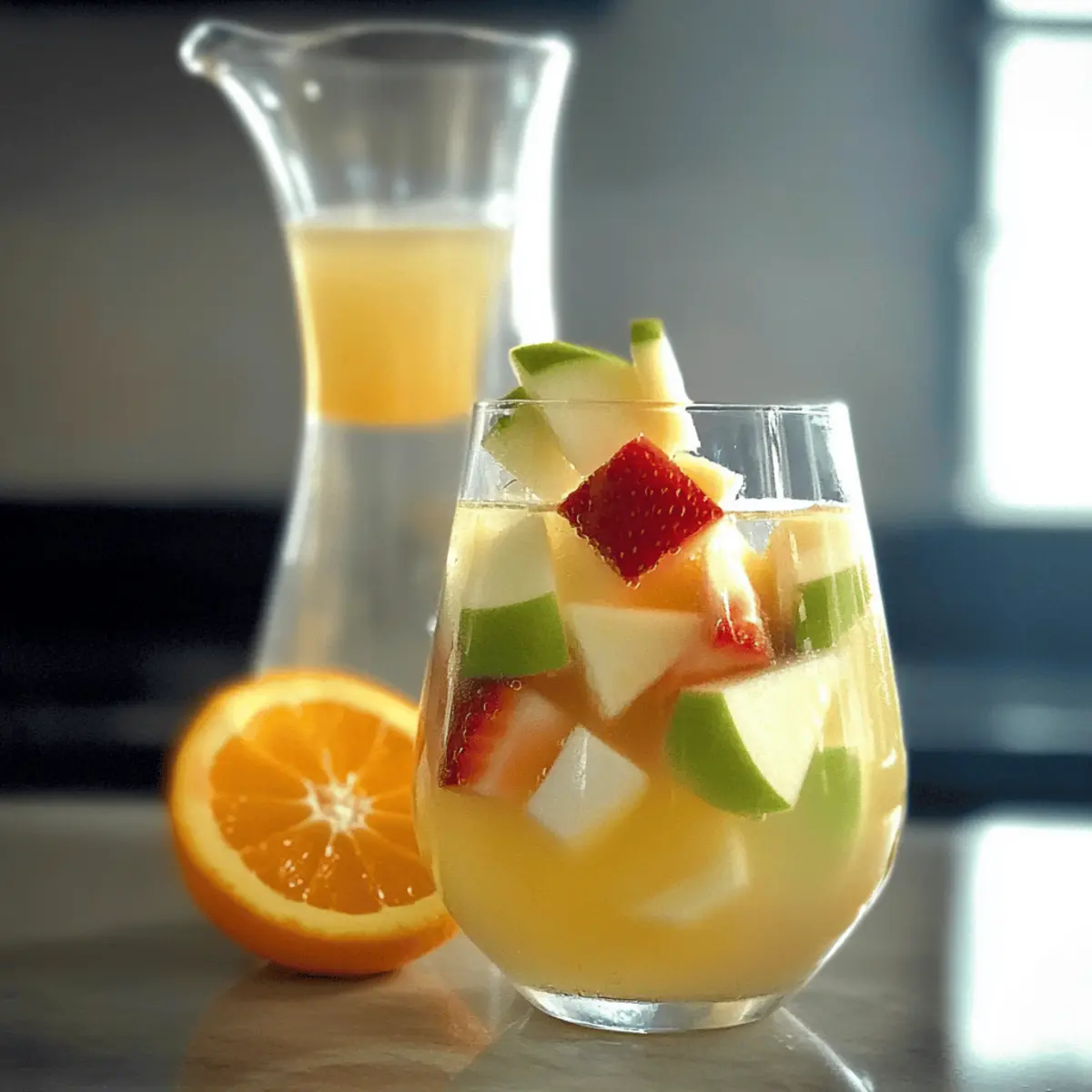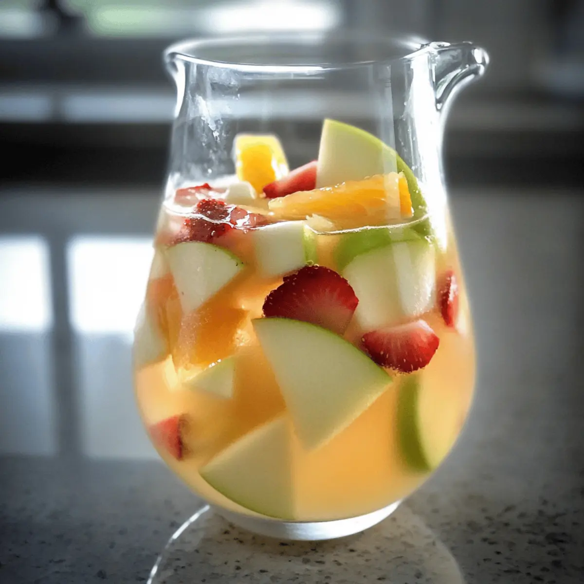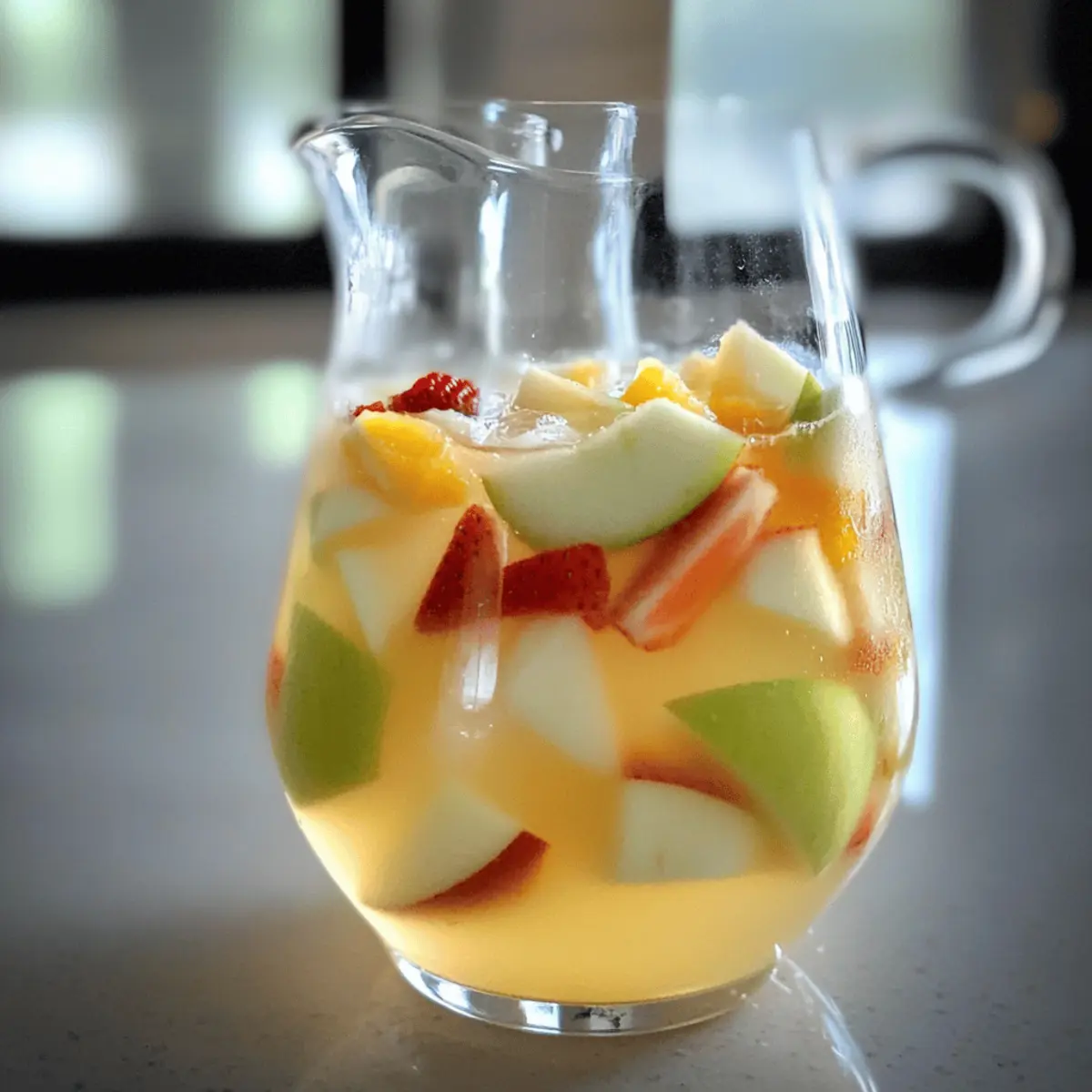 - Add fresh fruit by mixing in strawberries, orange slices, and chopped green apple into the pitcher.