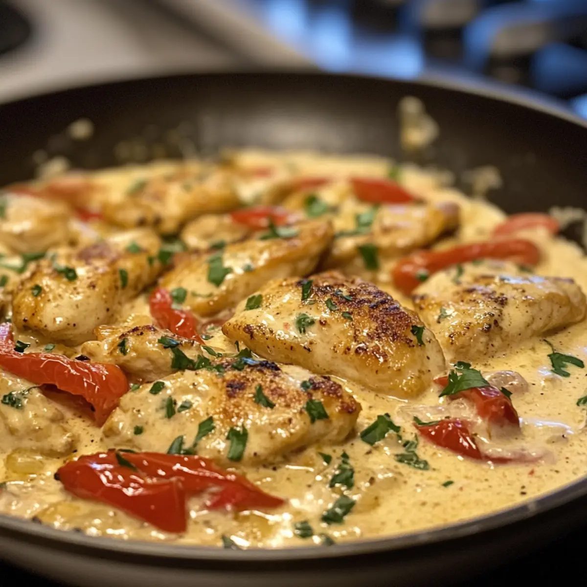 I recommend using boneless, skinless chicken breasts cut into thin strips for an even cook. However, boneless, skinless thighs can also be used for a juicier result. Both options are delicious and will absorb the creamy sauce beautifully!