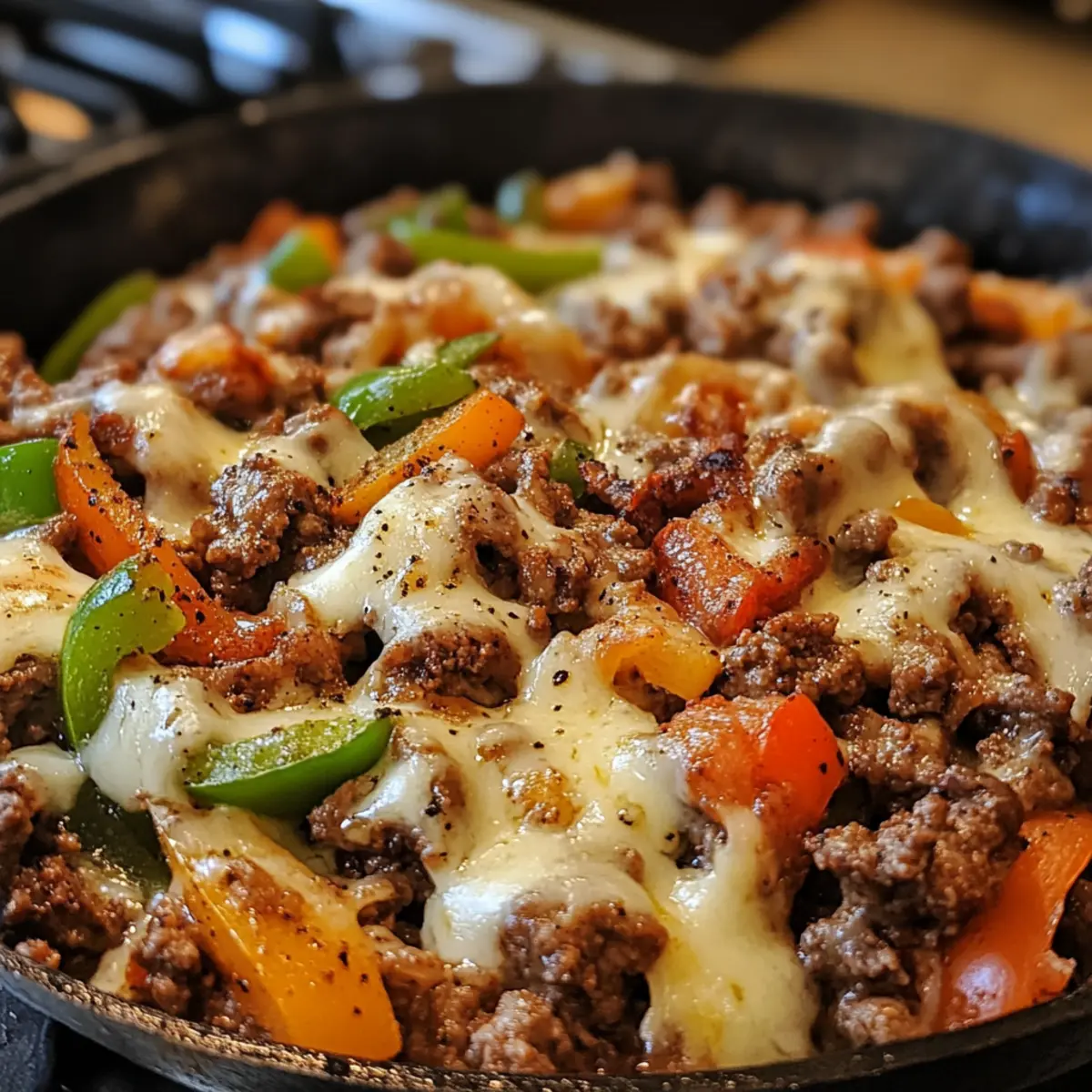 As I stirred the sizzling skillet, the enticing aroma of garlic and melted cheese wafted through the kitchen, it felt like a warm hug on a hectic weeknight. This Keto Philly Cheesesteak Style Beef Skillet melds the comforting essence of a classic cheesesteak with the ease of a weeknight meal, making it a true crowd-pleaser. In just under 30 minutes, you’ll serve up a flavorful, hearty dinner that won’t derail your low-carb goals. This recipe is not only budget-friendly with its use of ground beef, but it’s also a delight for the senses—perfect for anyone looking to savor the bold flavors of home-cooked goodness. What’s your favorite twist on a classic dish?