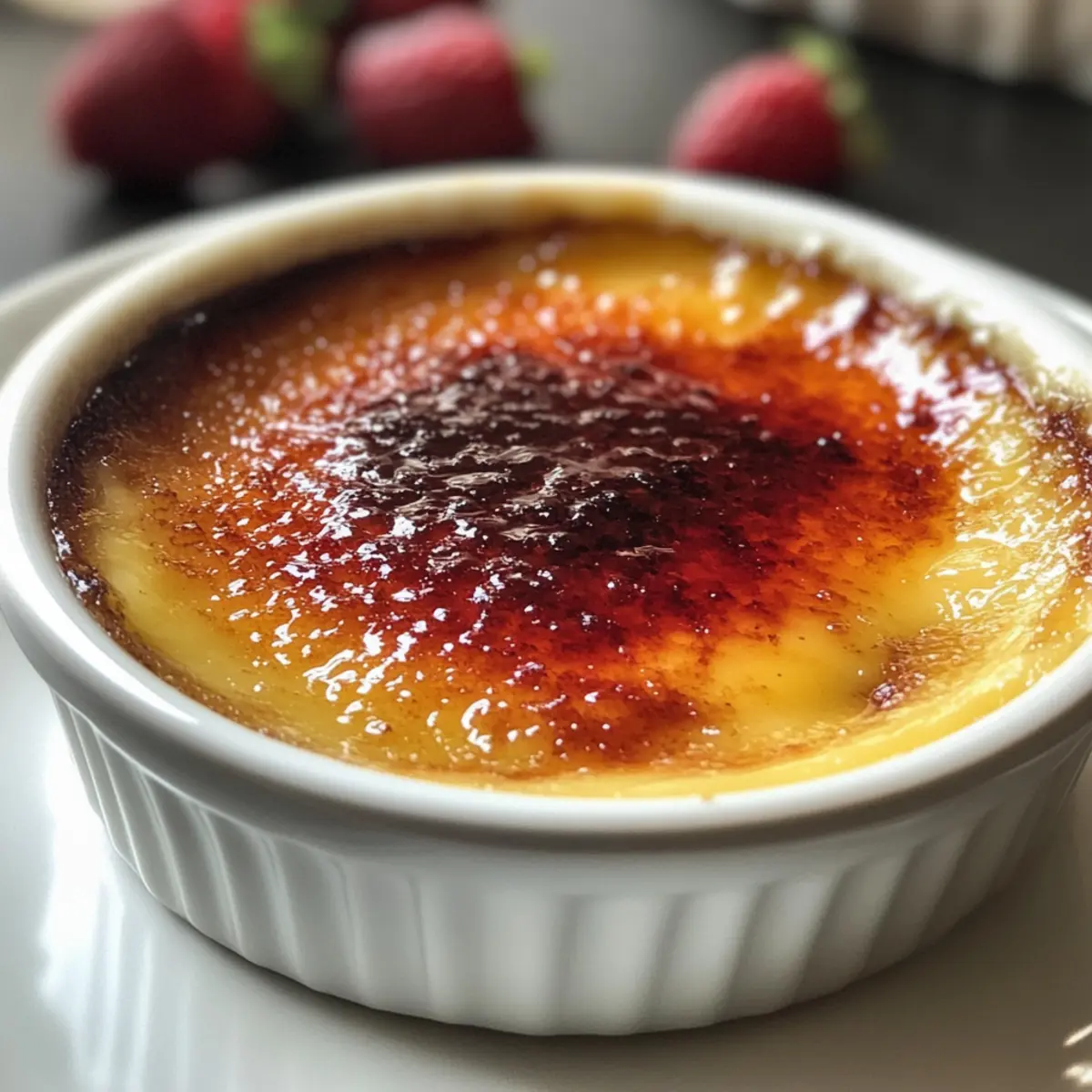 Fresh Berries: A mix of strawberries and raspberries adds a tart contrast to the sweet, creamy custard, enhancing both flavor and presentation. The burst of freshness cuts through the richness of the brulee, making every bite harmonious.