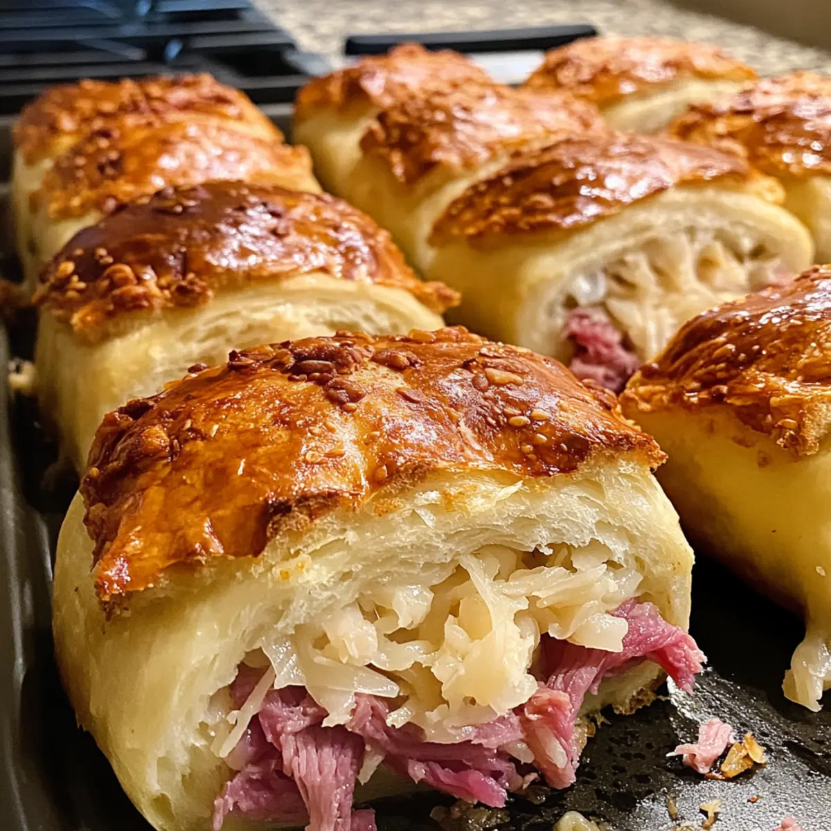 Savory Comfort: The classic combination of corned beef, Swiss cheese, and tangy sauerkraut packed inside flaky rolls offers a nostalgic feel with every bite.