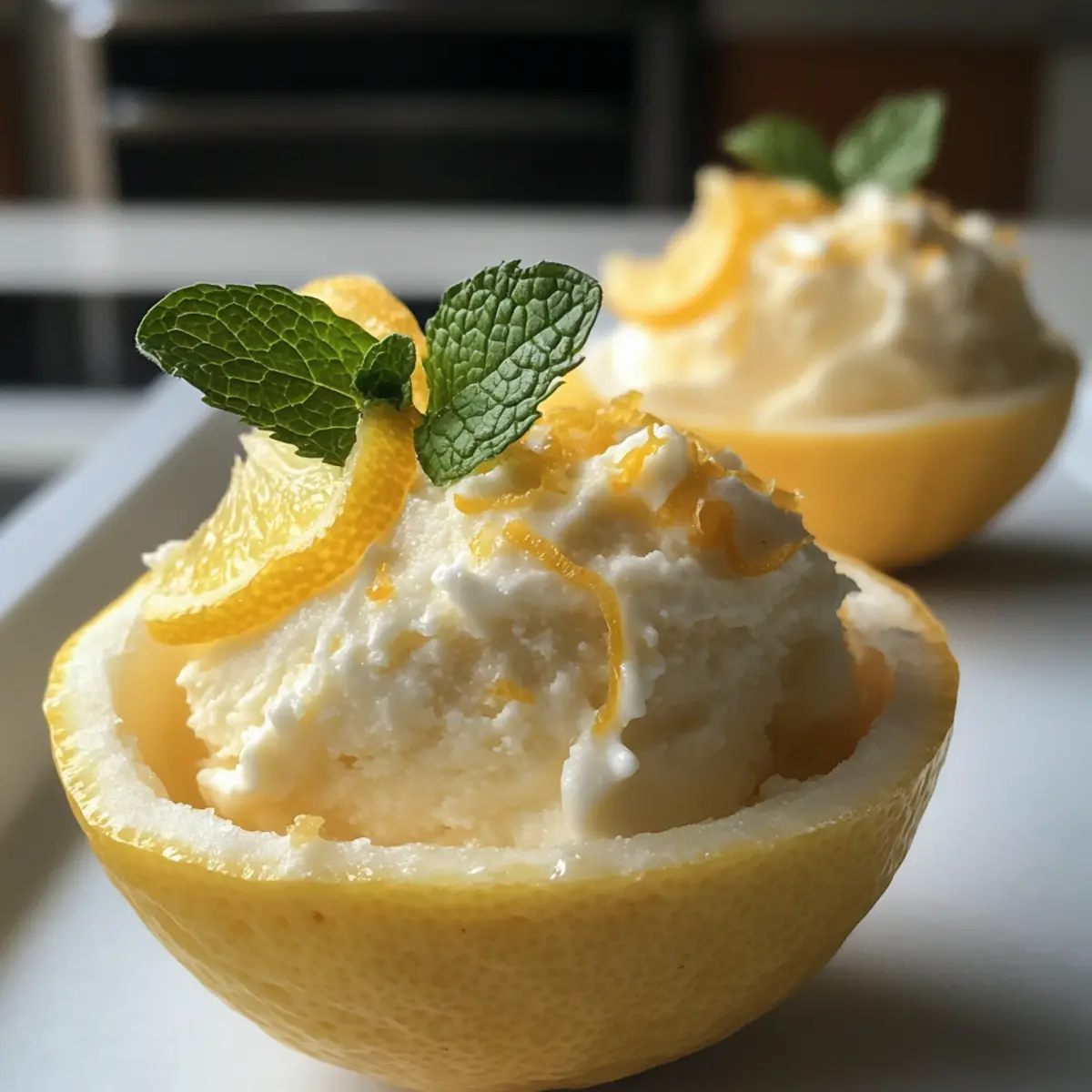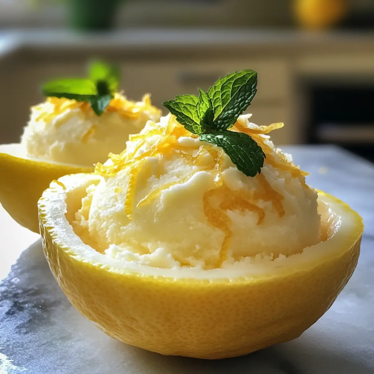 - Fill the Lemon Shells: Spoon the sorbet mixture into the frozen shells, avoiding overflow, and freeze again.