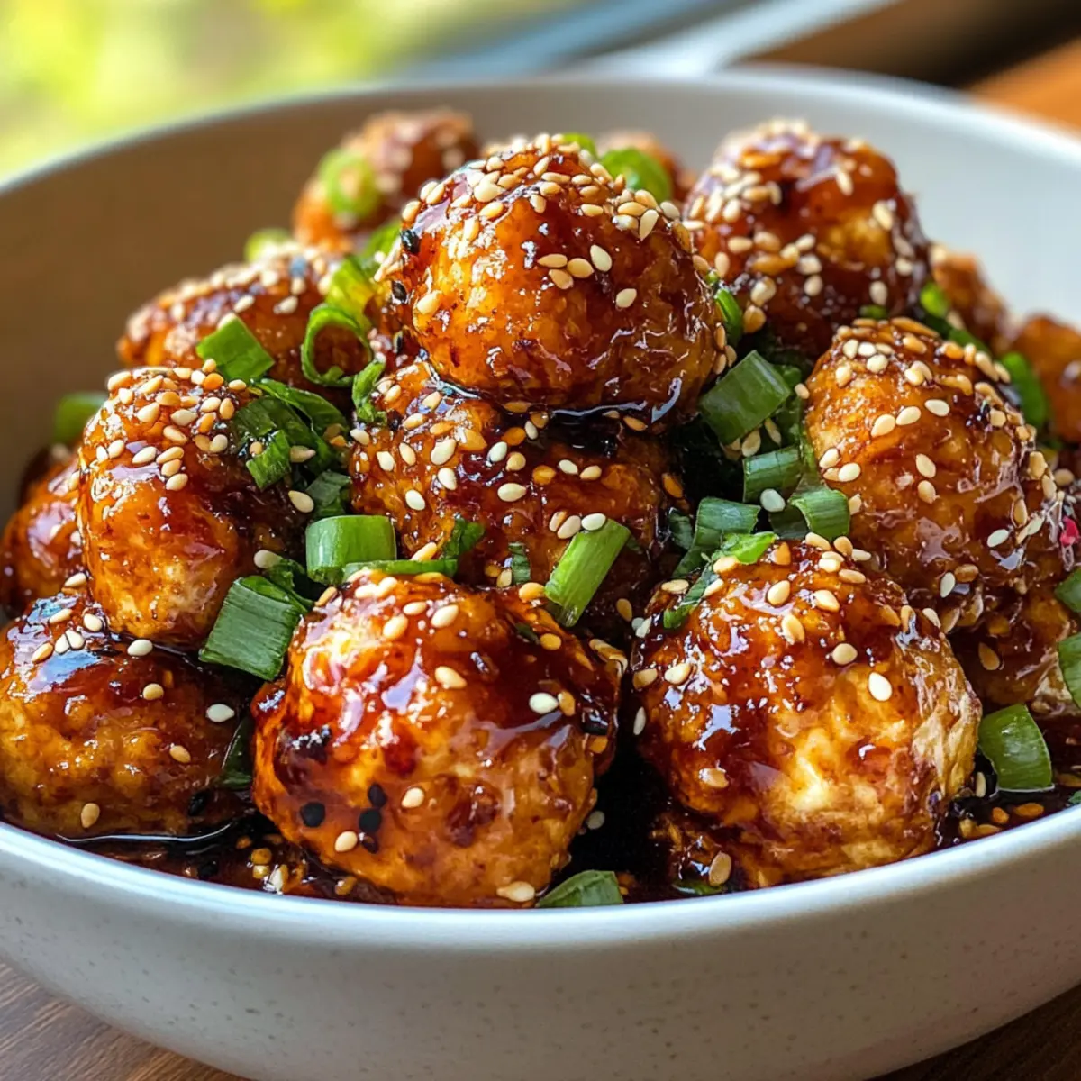 Garnish for Flavor: Don’t skip the green onions and sesame seeds—they add texture and a fresh taste that elevates your sweet chili tofu balls.