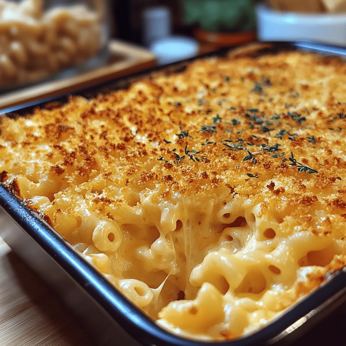 Every holiday season, our kitchen transforms into a lively hub of laughter and delicious aromas. This year, I’m excited to share my ultimate creamy Thanksgiving Mac Cheese, a dish that’s sure to steal the spotlight at any gathering. Packed with sharp cheddar and nutty Gruyère, this velvety comfort food is not just a fantastic side; it’s a heartfelt dish that brings everyone together. One of the best parts? It requires minimal prep and can easily be made ahead of time, allowing you to spend more time with your loved ones instead of slaving away in the kitchen. As soon as that golden, crispy panko topping emerges from the oven, you’ll understand why this baked mac and cheese is destined to become a holiday favorite. I can’t wait for you to try it! What special touch will you add to make it your own?