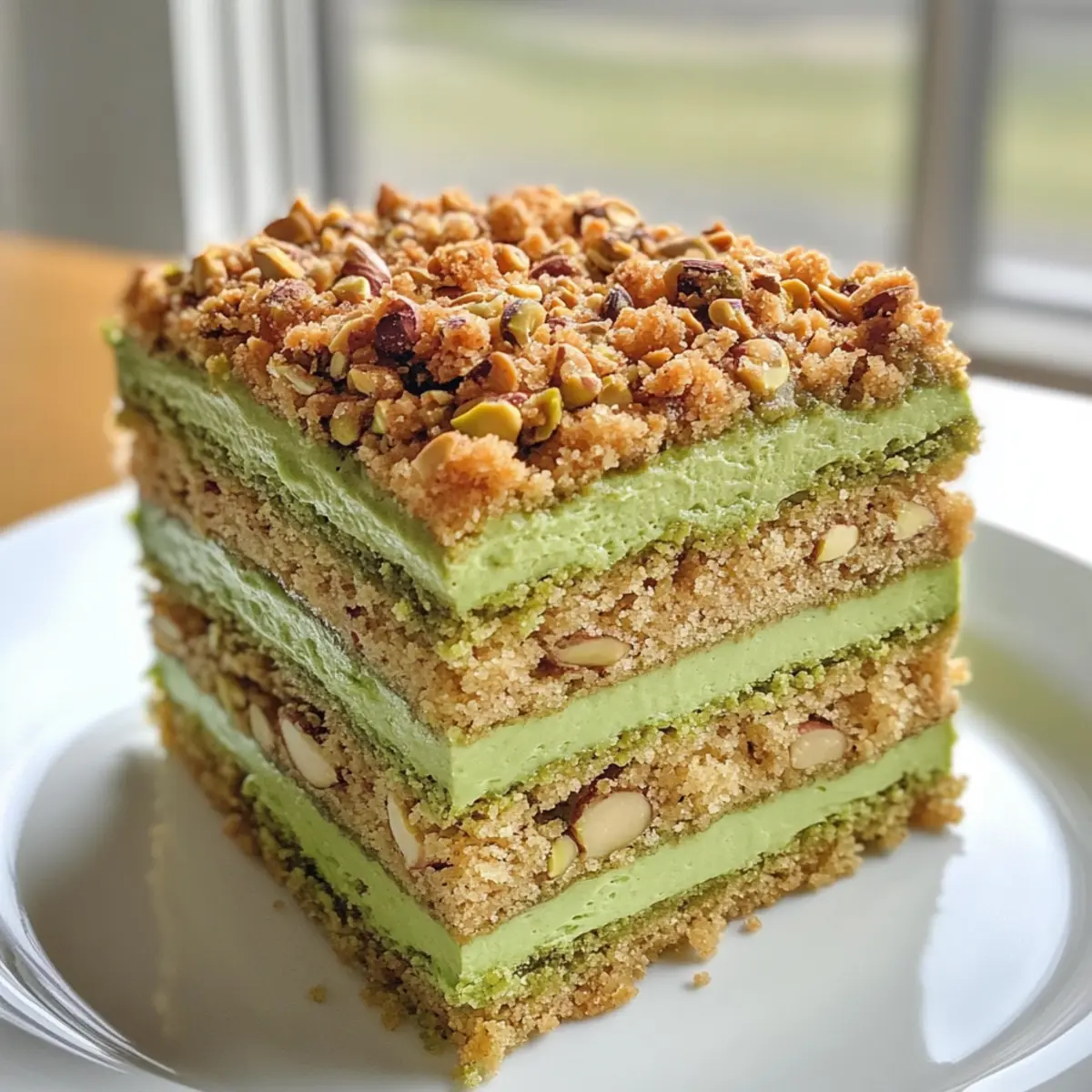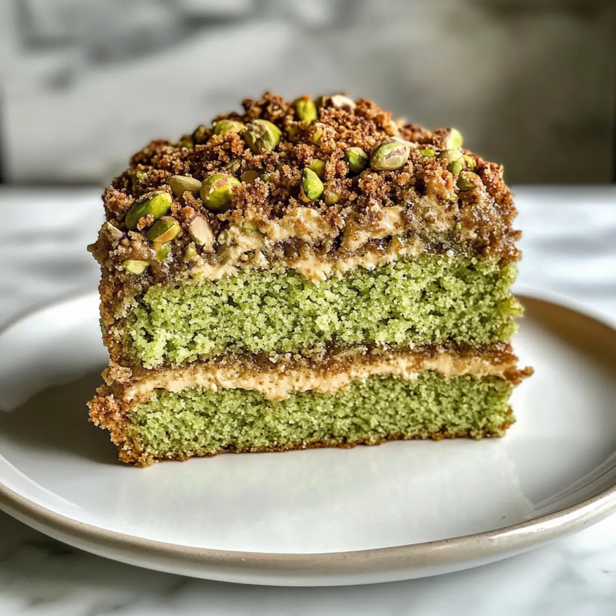 Delicious Vegan Pistachio Coffee Cake with Crunchy Topping