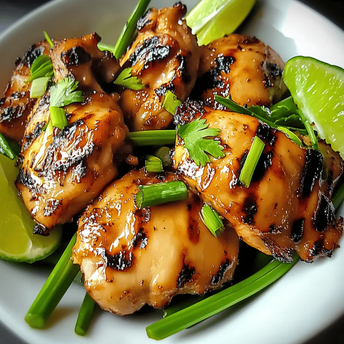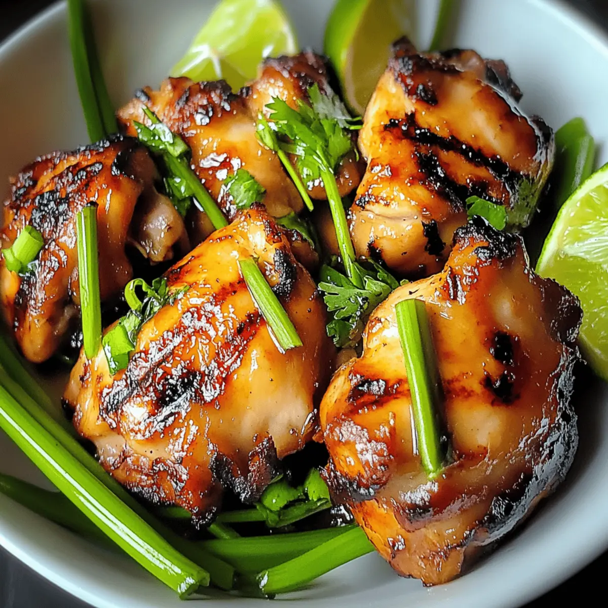 Once preheated, remove the chicken from the marinade, allowing any excess to drip off before placing it on the grill. Cook the chicken thighs for about 5-7 minutes per side, or until they reach an internal temperature of 165°F (75°C). You want a nice char with grill marks while keeping the insides tender. The aroma will be heavenly!